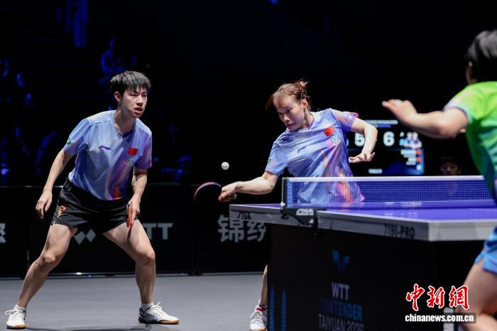 4月10日,中国乒乓球混双组合黄友政/石洵瑶在WTT常规挑战赛太原站比赛中。组委会 供图