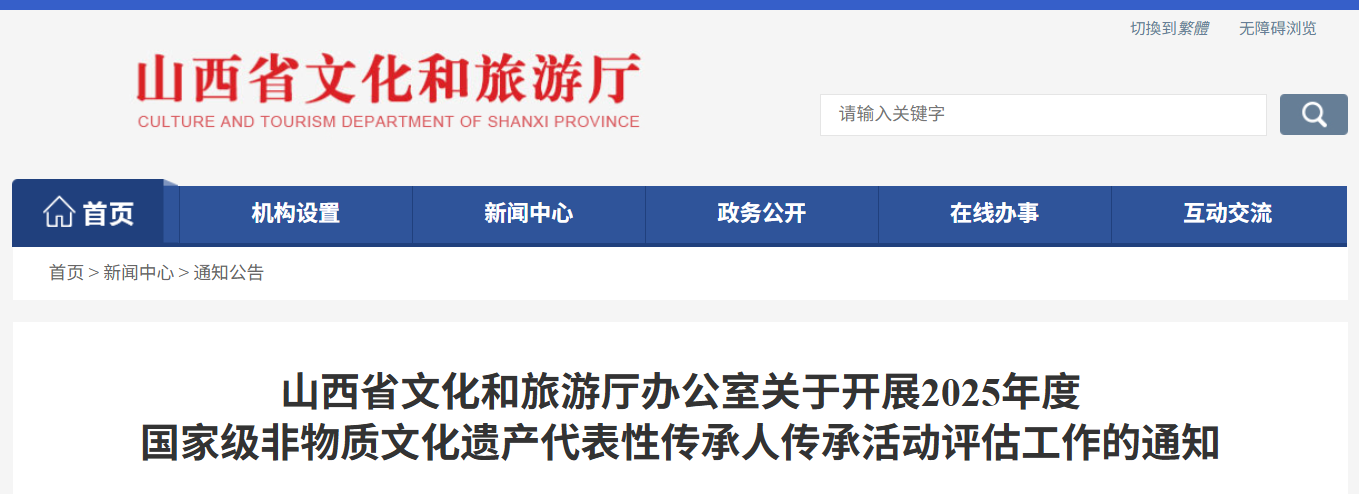 近日,山西省文化和旅游厅发布通知,正式启动2025年度国家级非物质文化遗产代表性传承人传承活动评估工作。