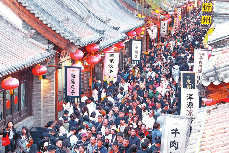 4月4日,忻州古城游人如织。游客在古城内漫步休闲、观赏表演、品尝美食,尽享惬意假期。张存良摄