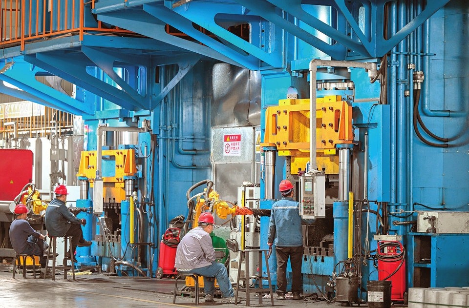 4月11日,山西华拓铝业有限公司锻造铝合金汽车轮毂生产车间,工人正加紧赶制订单。去年以来,该公司引进年产100万个锻造铝合金汽车轮毂锻压项目,不断提升汽车零部件制造水平。李向东摄