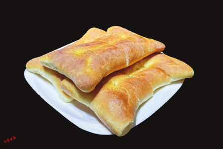黎城八吊烧饼以白面烤制而成,松软香甜。