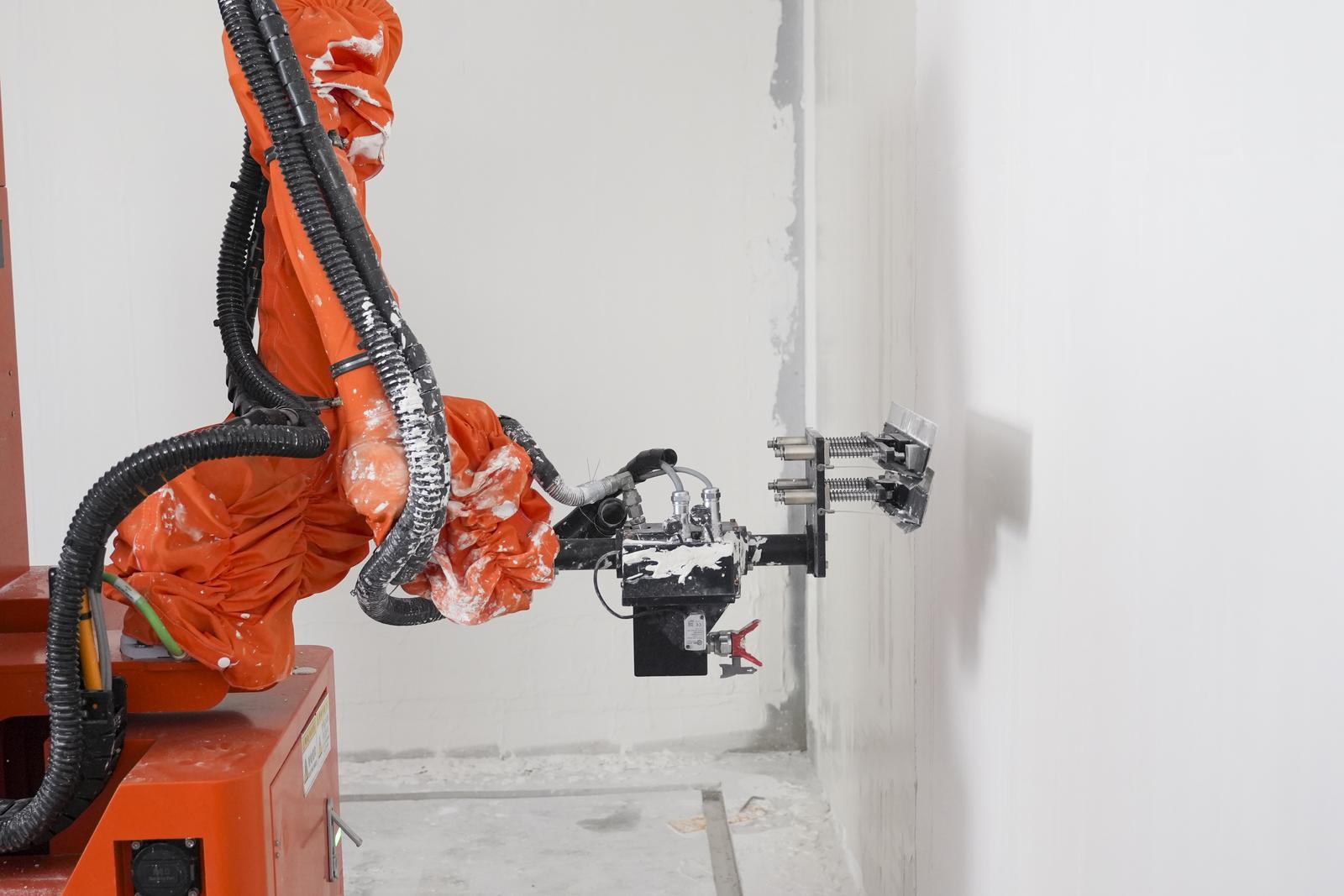 喷刮打磨一体机器人精准测量,让墙面更工整。