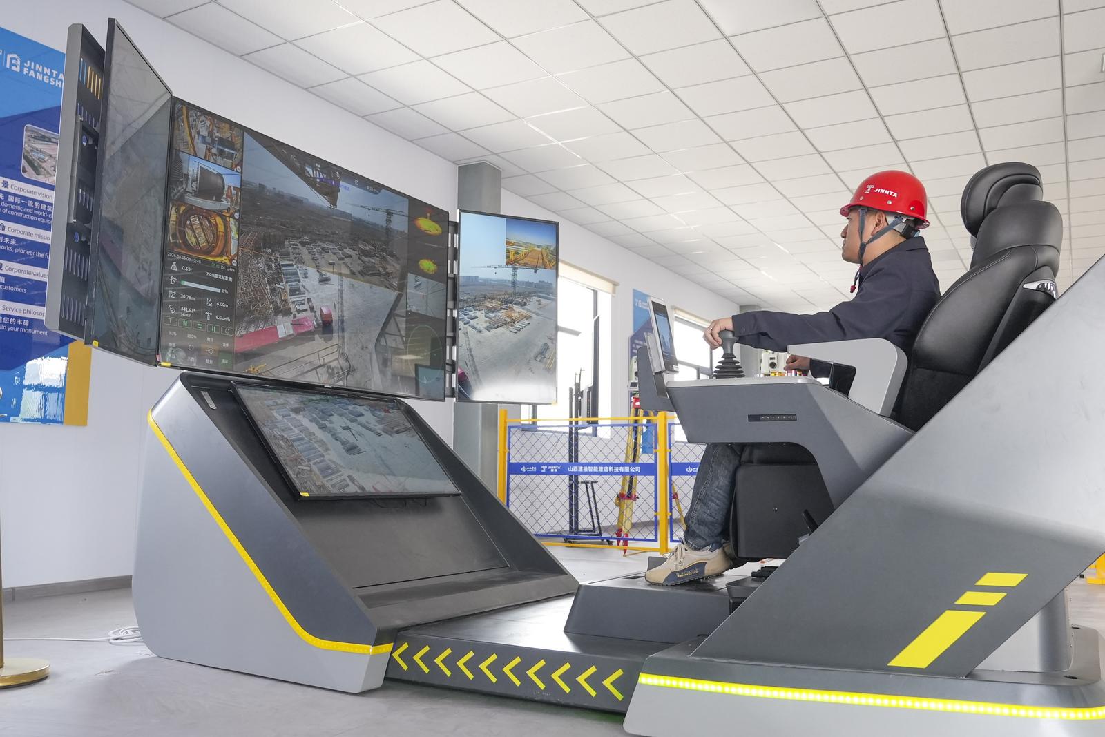 在塔机智能远程驾驶舱,操作员坐在屏幕前,轻轻一推摇杆,百米高空的塔机稳稳运转,画面实时回传、全域可视,像玩“实景游戏”一样完成高危吊装。