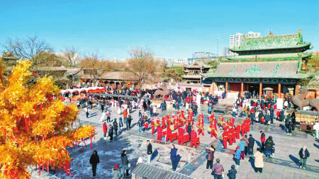 图为春节元宵节期间,晋中榆次老城传统民俗展演吸引众多游客。刘勇摄