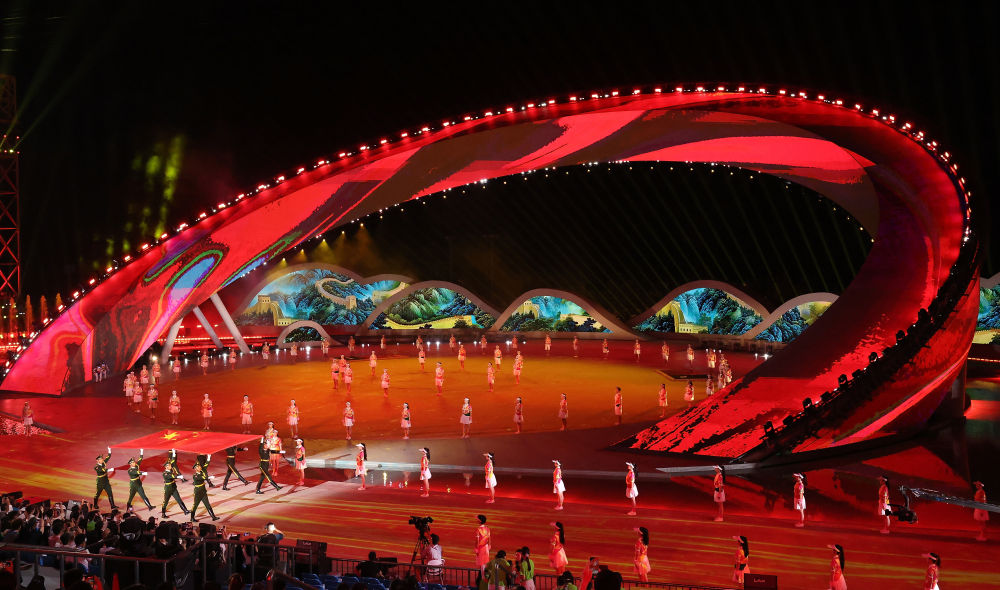 中华人民共和国国旗在开幕式上入场。新华社记者 张帆 摄