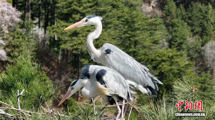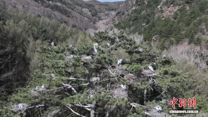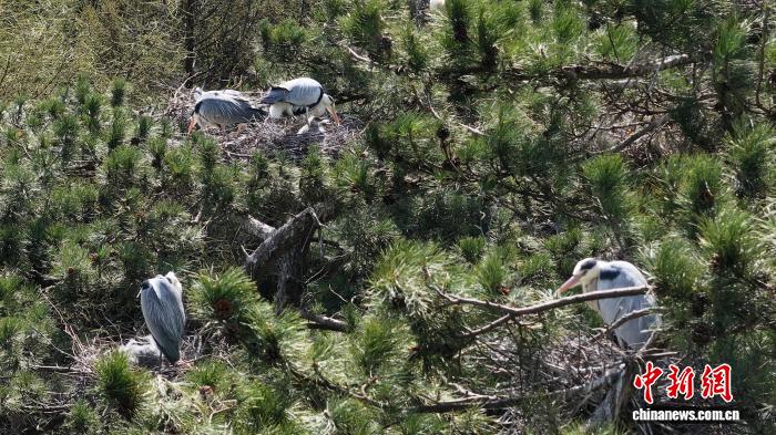 春日渐暖,成群的苍鹭如约返回山西五台山景区,在古松林间筑巢安家、繁衍生息。朱建青 摄