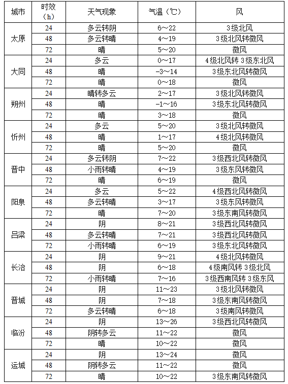 全省大部分地区有4-5级、短时6级或以上西北风;