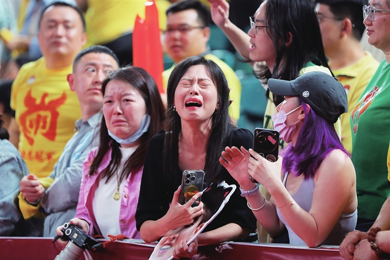 比赛结束后,山西女篮外援奥斯汀沉默不语,女球迷失声痛哭。王韵菲 摄
