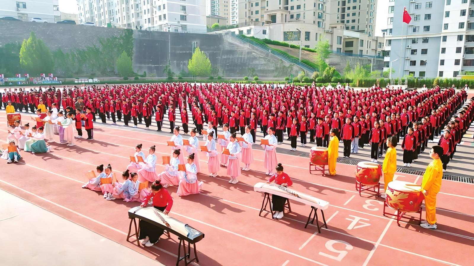 4月20日,忻州市七一路小学举办“以阅读致敬远方 为强国书写华章”经典诵读展演。张存良摄